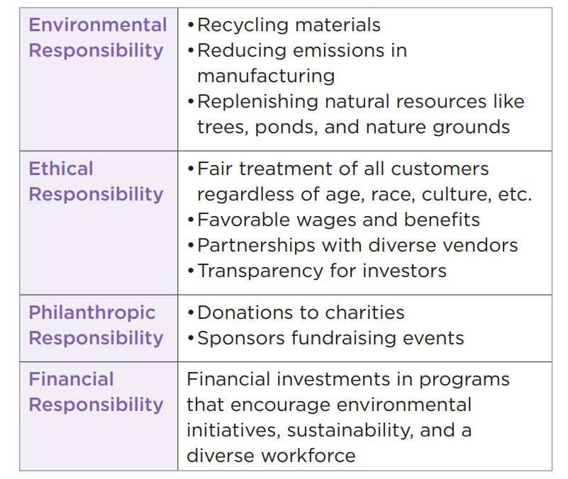 CSR initiatives typically fall under the following four categories: environmental, ethical, philanthropic, and financial.